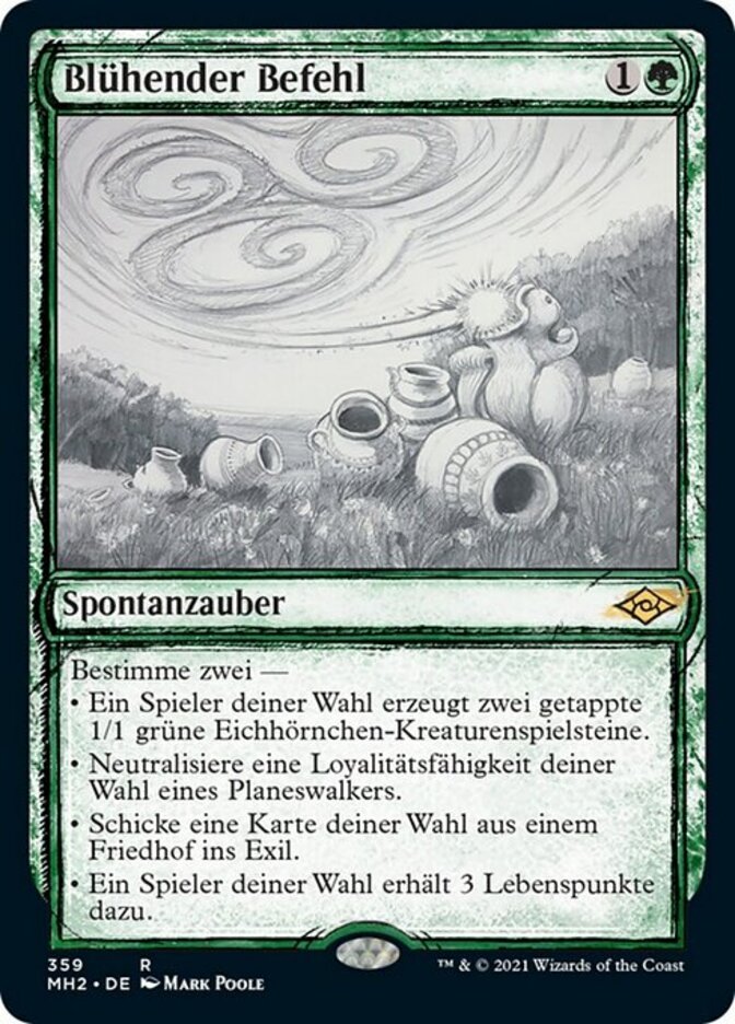 | Rules | Choose two — • Target player creates two tapped 1/1 green Squirrel creature tokens. • Counter target loyalty ability of a planeswalker. • Exile target card from a graveyard. • Target player gains 3 life. |