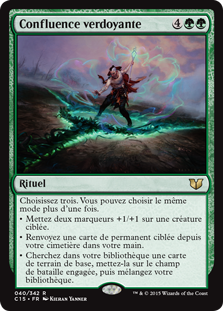 | Rules | Choose three. You may choose the same mode more than once. • Put two +1/+1 counters on target creature. • Return target permanent card from your graveyard to your hand. • Search your library for a basic land card, put it onto the battlefield tapped, then shuffle. |