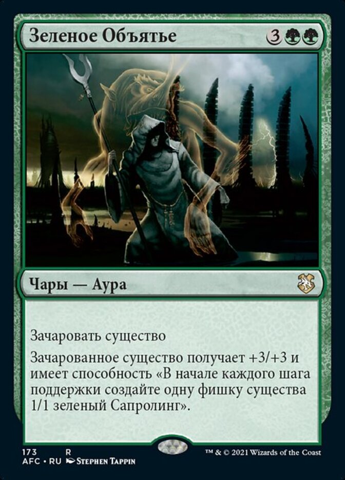 | Rules | Enchant creature Enchanted creature gets +3/+3 and has "At the beginning of each upkeep, create a 1/1 green Saproling creature token." |
