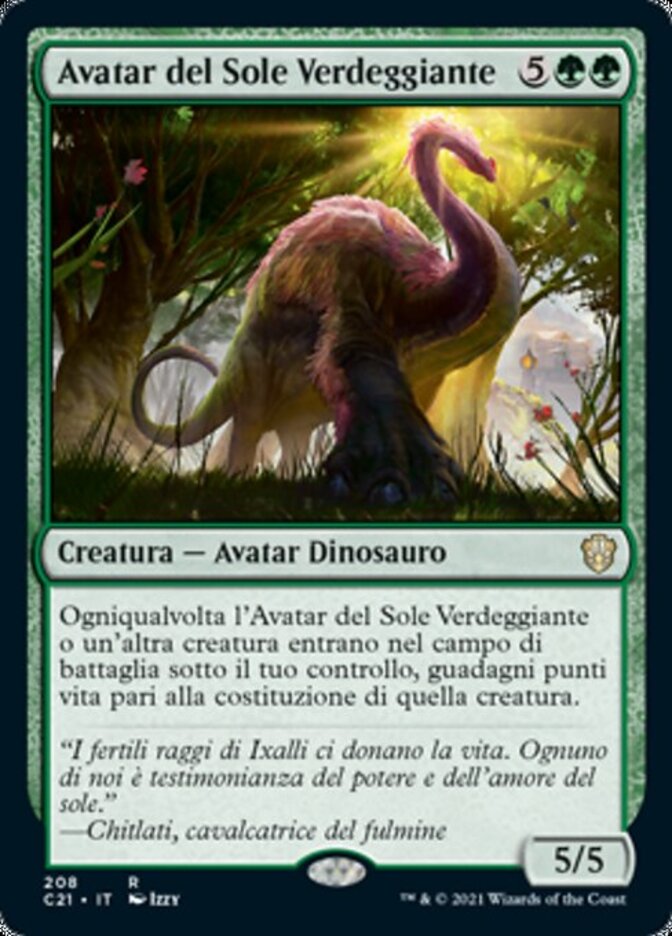 | Rules | Whenever Verdant Sun's Avatar or another creature enters the battlefield under your control, you gain life equal to that creature's toughness. |
