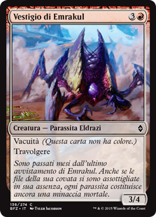| Flavor | Emrakul has not been seen in months. Though her brood's numbers have dwindled in her absence, each drone is still a deadly threat. |