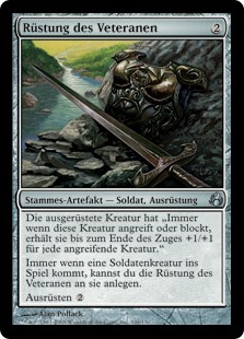 | Rules | Equipped creature has "Whenever this creature attacks or blocks, it gets +1/+1 until end of turn for each attacking creature." Whenever a Soldier creature enters the battlefield, you may attach Veteran's Armaments to it. Equip |