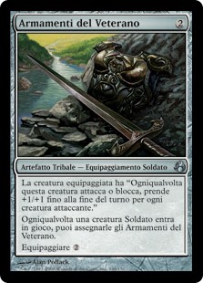 | Rules | Equipped creature has "Whenever this creature attacks or blocks, it gets +1/+1 until end of turn for each attacking creature." Whenever a Soldier creature enters the battlefield, you may attach Veteran's Armaments to it. Equip |
