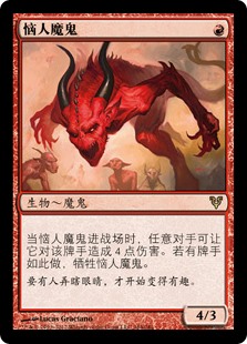 | Rules | When Vexing Devil enters the battlefield, any opponent may have it deal 4 damage to them. If a player does, sacrifice Vexing Devil. |