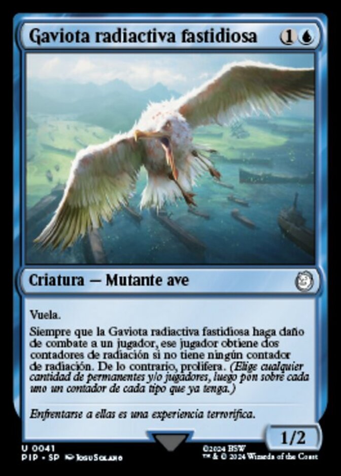| Rules | Flying Whenever Vexing Radgull deals combat damage to a player, that player gets two rad counters if they don't have any rad counters. Otherwise, proliferate. (Choose any number of permanents and/or players, then give each another counter of each kind already there.) |