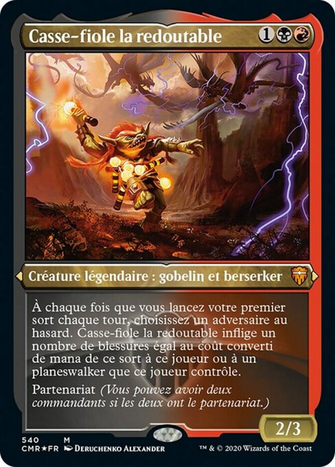 | Rules | Whenever you cast your first spell each turn, choose an opponent at random. Vial Smasher the Fierce deals damage equal to that spell's mana value to that player or a planeswalker that player controls. Partner (You can have two commanders if both have partner.) |