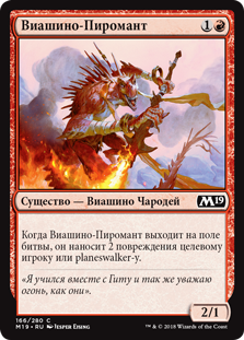 | Rules | When Viashino Pyromancer enters the battlefield, it deals 2 damage to target player or planeswalker. |