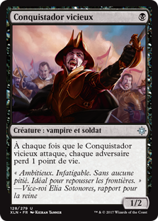 | Rules | Whenever Vicious Conquistador attacks, each opponent loses 1 life. |
