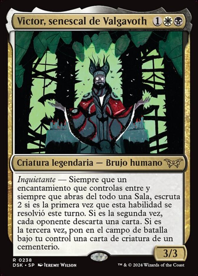 | Rules | Eerie — Whenever an enchantment you control enters and whenever you fully unlock a Room, surveil 2 if this is the first time this ability has resolved this turn. If it's the second time, each opponent discards a card. If it's the third time, put a creature card from a graveyard onto the battlefield under your control. |