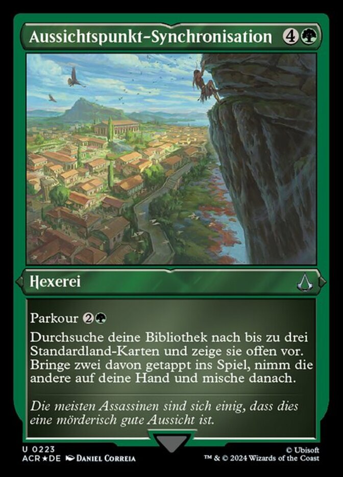 | Rules | Freerunning (You may cast this spell for its freerunning cost if you dealt combat damage to a player this turn with an Assassin or commander.) Search your library for up to three basic land cards and reveal them. Put two of them onto the battlefield tapped and the other into your hand, then shuffle. |