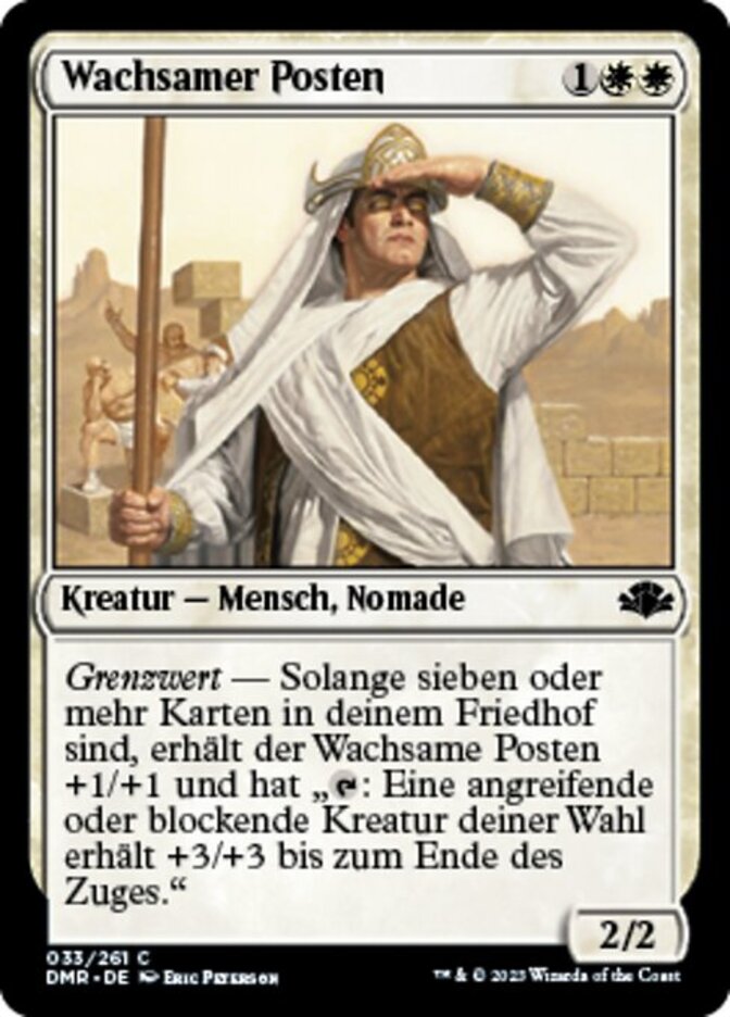 | Rules | Threshold — As long as seven or more cards are in your graveyard, Vigilant Sentry gets +1/+1 and has ": Target attacking or blocking creature gets +3/+3 until end of turn." |