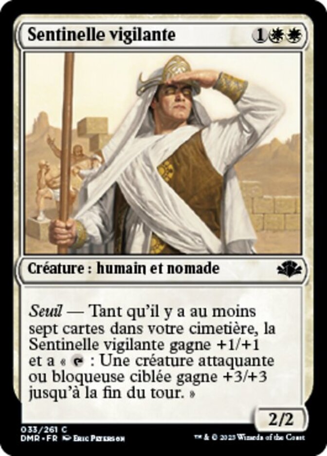 | Rules | Threshold — As long as seven or more cards are in your graveyard, Vigilant Sentry gets +1/+1 and has ": Target attacking or blocking creature gets +3/+3 until end of turn." |