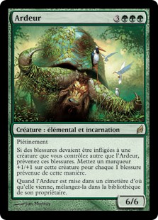 | Rules | Trample If damage would be dealt to another creature you control, prevent that damage. Put a +1/+1 counter on that creature for each 1 damage prevented this way. When Vigor is put into a graveyard from anywhere, shuffle it into its owner's library. |