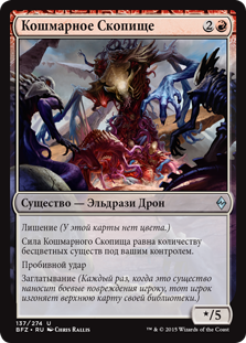 | Rules | Devoid (This card has no color.) Vile Aggregate's power is equal to the number of colorless creatures you control. Trample Ingest (Whenever this creature deals combat damage to a player, that player exiles the top card of their library.) |
