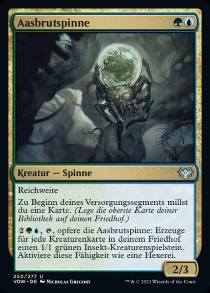 | Rules | Reach At the beginning of your upkeep, mill a card. (Put the top card of your library into your graveyard.) , , Sacrifice Vilespawn Spider: Create a 1/1 green Insect creature token for each creature card in your graveyard. Activate only as a sorcery. |
