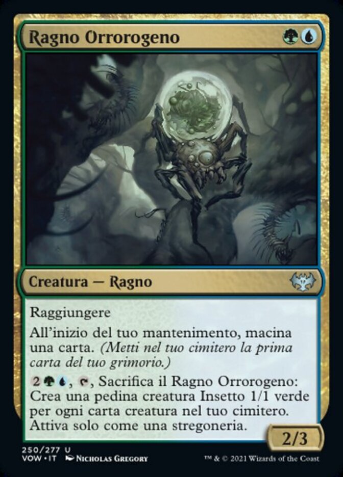 | Rules | Reach At the beginning of your upkeep, mill a card. (Put the top card of your library into your graveyard.) , , Sacrifice Vilespawn Spider: Create a 1/1 green Insect creature token for each creature card in your graveyard. Activate only as a sorcery. |