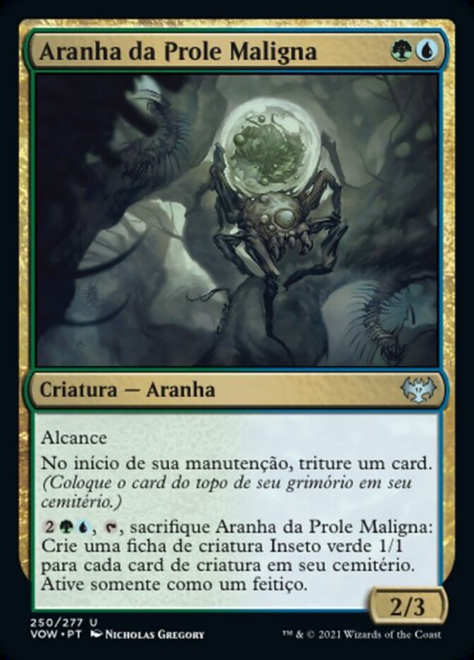 | Rules | Reach At the beginning of your upkeep, mill a card. (Put the top card of your library into your graveyard.) , , Sacrifice Vilespawn Spider: Create a 1/1 green Insect creature token for each creature card in your graveyard. Activate only as a sorcery. |