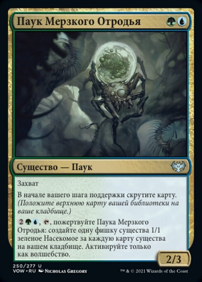 | Rules | Reach At the beginning of your upkeep, mill a card. (Put the top card of your library into your graveyard.) , , Sacrifice Vilespawn Spider: Create a 1/1 green Insect creature token for each creature card in your graveyard. Activate only as a sorcery. |