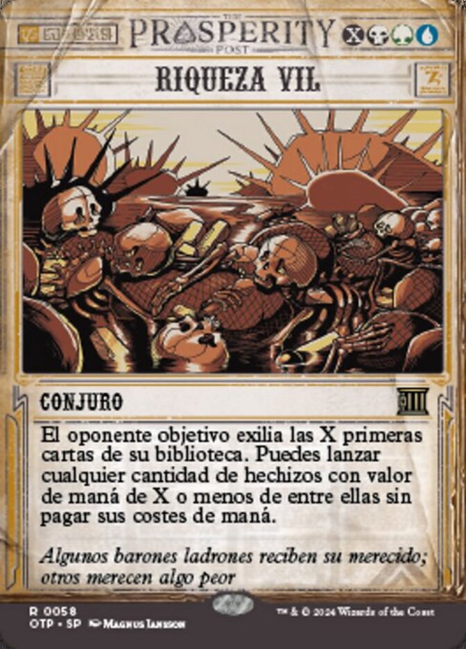 | Rules | Target opponent exiles the top X cards of their library. You may cast any number of spells with mana value X or less from among them without paying their mana costs. |