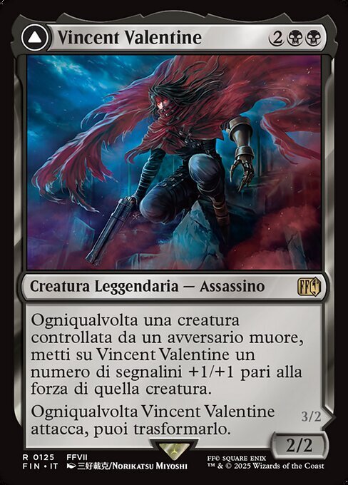 | Rules | Whenever a creature an opponent controls dies, put a number of +1/+1 counters on Vincent Valentine equal to that creature's power. Whenever Vincent Valentine attacks, you may transform it. // Trample, lifelink When Galian Beast dies, return it to the battlefield tapped (front face up). |