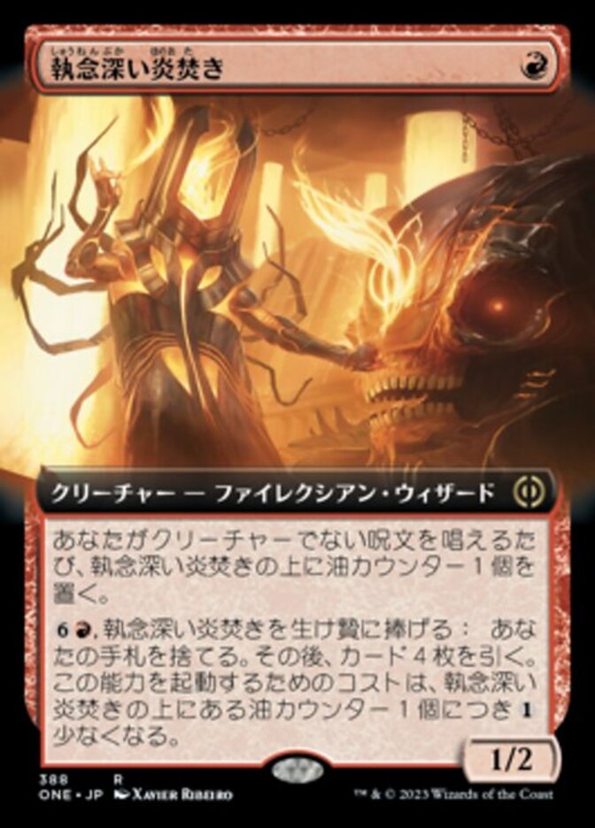 | Rules | Whenever you cast a noncreature spell, put an oil counter on Vindictive Flamestoker. , Sacrifice Vindictive Flamestoker: Discard your hand, then draw four cards. This ability costs less to activate for each oil counter on Vindictive Flamestoker. |
