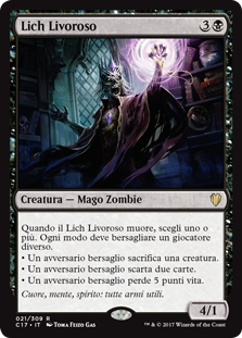 | Rules | When Vindictive Lich dies, choose one or more. Each mode must target a different player. • Target opponent sacrifices a creature. • Target opponent discards two cards. • Target opponent loses 5 life. |
