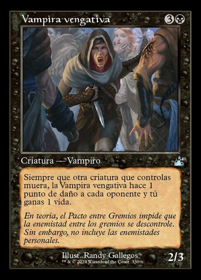 | Rules | Whenever another creature you control dies, Vindictive Vampire deals 1 damage to each opponent and you gain 1 life. |