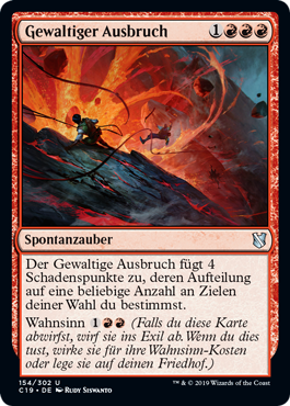 | Rules | Violent Eruption deals 4 damage divided as you choose among any number of targets. Madness (If you discard this card, discard it into exile. When you do, cast it for its madness cost or put it into your graveyard.) |