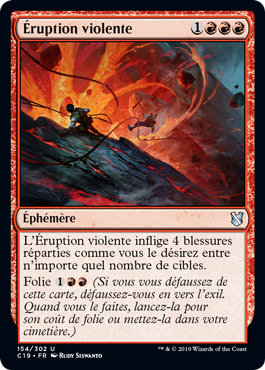 | Rules | Violent Eruption deals 4 damage divided as you choose among any number of targets. Madness (If you discard this card, discard it into exile. When you do, cast it for its madness cost or put it into your graveyard.) |