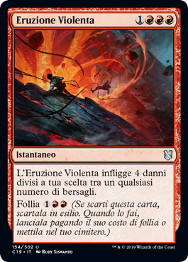 | Rules | Violent Eruption deals 4 damage divided as you choose among any number of targets. Madness (If you discard this card, discard it into exile. When you do, cast it for its madness cost or put it into your graveyard.) |