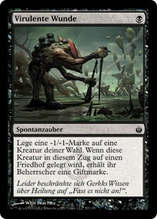 Rules Put a -1/-1 counter on target creature. When that creature dies this turn, its controller gets a poison counter.