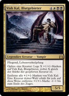 | Rules | Flying, lifelink Sacrifice a creature: Put X +1/+1 counters on Vish Kal, Blood Arbiter, where X is the sacrificed creature's power. Remove all +1/+1 counters from Vish Kal: Target creature gets -1/-1 until end of turn for each +1/+1 counter removed this way. |