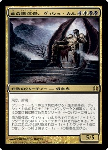 | Rules | Flying, lifelink Sacrifice a creature: Put X +1/+1 counters on Vish Kal, Blood Arbiter, where X is the sacrificed creature's power. Remove all +1/+1 counters from Vish Kal: Target creature gets -1/-1 until end of turn for each +1/+1 counter removed this way. |