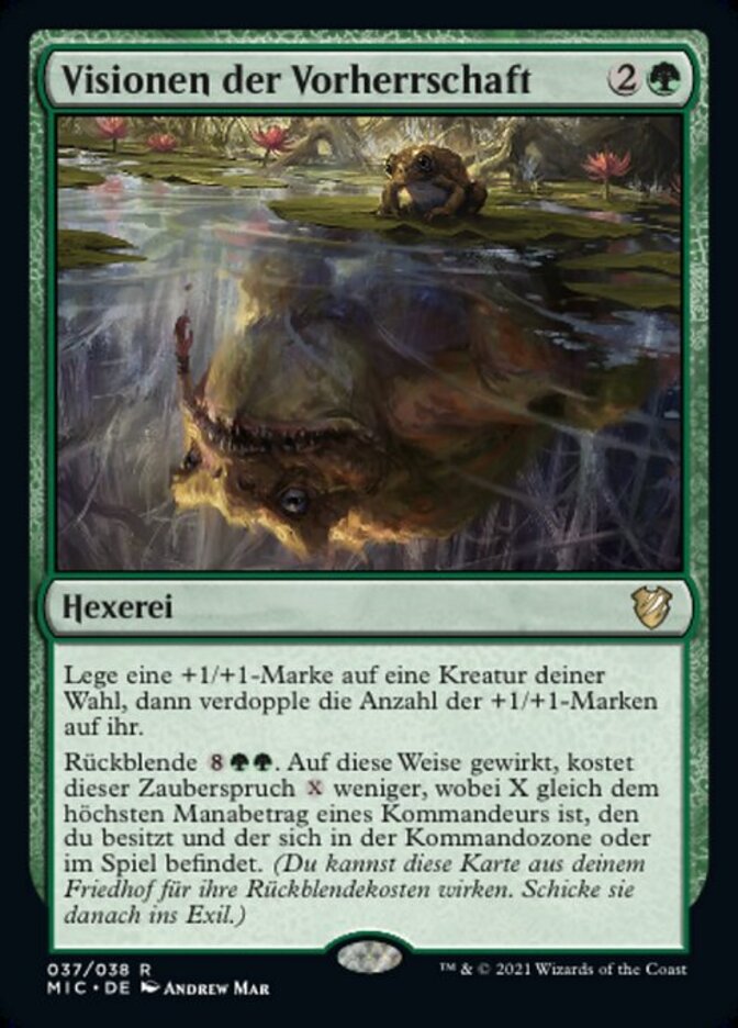 | Rules | Put a +1/+1 counter on target creature, then double the number of +1/+1 counters on it. Flashback . This spell costs less to cast this way, where X is the greatest mana value of a commander you own on the battlefield or in the command zone. (You may cast this card from your graveyard for its flashback cost. Then exile it.) |
