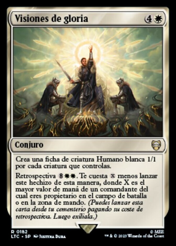 | Rules | Create a 1/1 white Human creature token for each creature you control. Flashback . This spell costs less to cast this way, where X is the greatest mana value of a commander you own on the battlefield or in the command zone. (You may cast this card from your graveyard for its flashback cost. Then exile it.) |