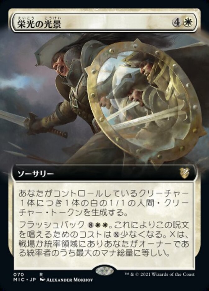 | Rules | Create a 1/1 white Human creature token for each creature you control. Flashback . This spell costs less to cast this way, where X is the greatest mana value of a commander you own on the battlefield or in the command zone. (You may cast this card from your graveyard for its flashback cost. Then exile it.) |