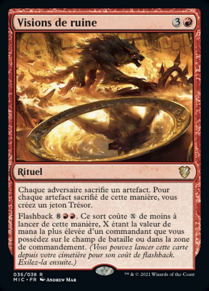 | Rules | Each opponent sacrifices an artifact. For each artifact sacrificed this way, you create a Treasure token. Flashback . This spell costs less to cast this way, where X is the greatest mana value of a commander you own on the battlefield or in the command zone. (You may cast this card from your graveyard for its flashback cost. Then exile it.) |