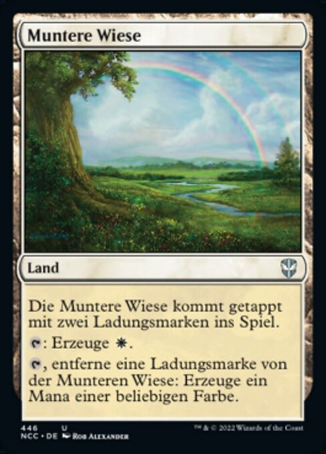 | Rules | Vivid Meadow enters the battlefield tapped with two charge counters on it. : Add . , Remove a charge counter from Vivid Meadow: Add one mana of any color. |