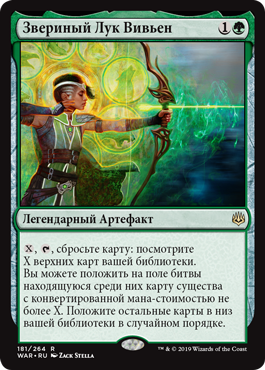 | Rules | , , Discard a card: Look at the top X cards of your library. You may put a creature card with mana value X or less from among them onto the battlefield. Put the rest on the bottom of your library in a random order. |