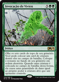 | Rules | Look at the top seven cards of your library. You may put a creature card from among them onto the battlefield. Put the rest on the bottom of your library in a random order. When a creature is put onto the battlefield this way, it deals damage equal to its power to target creature an opponent controls. |