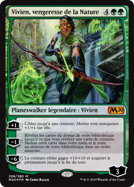 | Rules | +1: Put three +1/+1 counters on up to one target creature. −1: Reveal cards from the top of your library until you reveal a creature card. Put that card into your hand and the rest on the bottom of your library in a random order. −6: Target creature gets +10/+10 and gains trample until end of turn. |