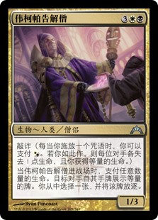 | Rules | Extort (Whenever you cast a spell, you may pay . If you do, each opponent loses 1 life and you gain that much life.) When Vizkopa Confessor enters the battlefield, pay any amount of life. Target opponent reveals that many cards from their hand. You choose one of them and exile it. |