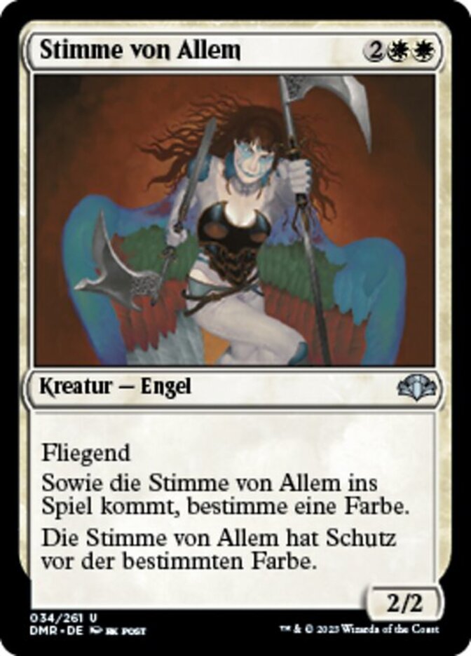 | Rules | Flying As Voice of All enters the battlefield, choose a color. Voice of All has protection from the chosen color. |