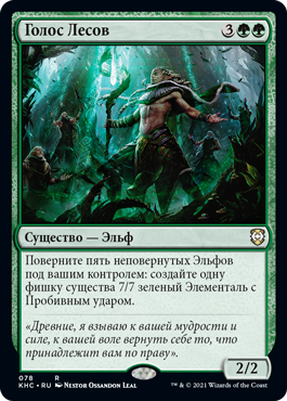 | Rules | Tap five untapped Elves you control: Create a 7/7 green Elemental creature token with trample. |