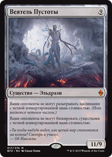 | Rules | Your opponents can't cast spells with even mana values. (Zero is even.) Your opponents can't block with creatures with even mana values. |