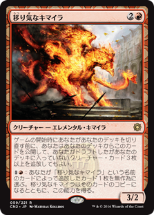 | Rules | Before you shuffle your deck to start the game, you may reveal this card from your deck and exile three or more creature cards you drafted that aren't in your deck. : Choose a card at random you exiled with cards named Volatile Chimera. Volatile Chimera becomes a copy of that card, except it has this ability. |