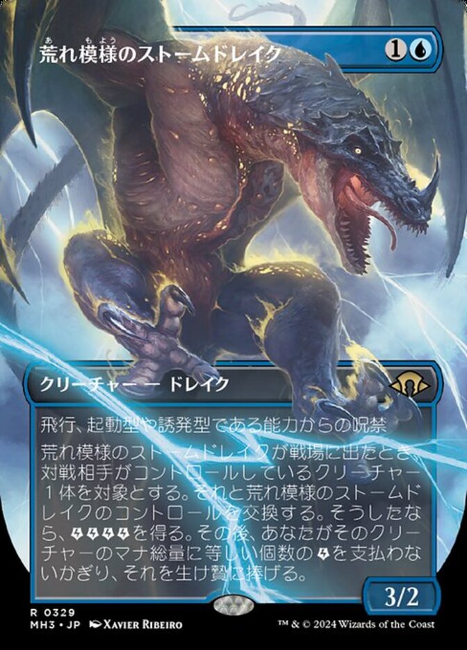 | Rules | Flying, hexproof from activated and triggered abilities When Volatile Stormdrake enters the battlefield, exchange control of Volatile Stormdrake and target creature an opponent controls. If you do, you get , then sacrifice that creature unless you pay an amount of equal to its mana value. |