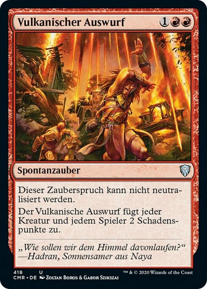| Rules | This spell can't be countered. Volcanic Fallout deals 2 damage to each creature and each player. |