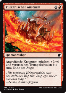| Rules | Attacking creatures get +2/+0 and gain trample until end of turn. |