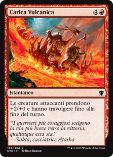 | Rules | Attacking creatures get +2/+0 and gain trample until end of turn. |